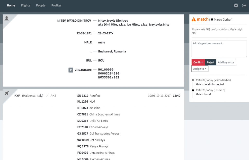 Hermes is a passenger screening application designed to assist national border security organizations. The application integrates various data streams from a person’s journey, starting from the initial booking of an airline ticket (or any other mode of transport) to the actual border crossing. This provides the border agency and officers with detailed insights and a mission critical and actionable app to keep national security at a high level.